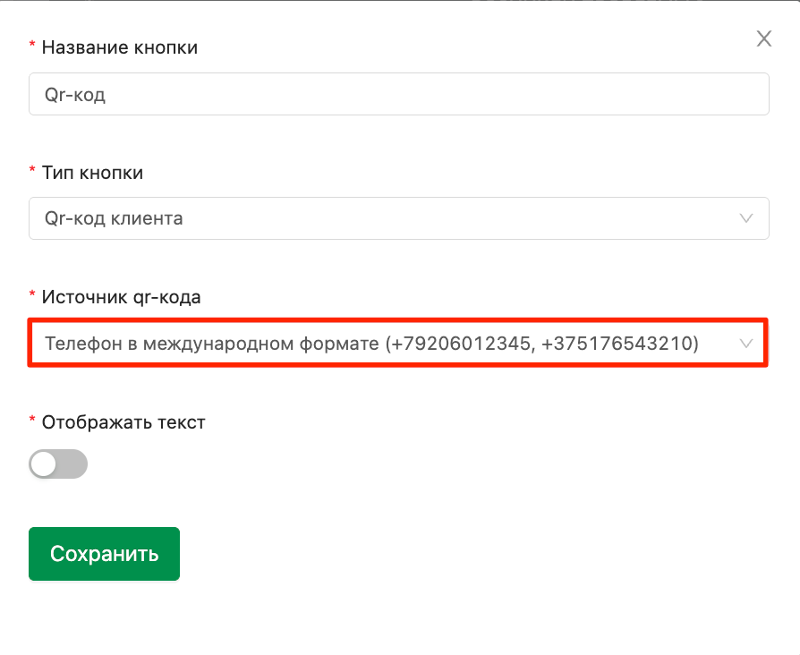 Однако если при сканировании QR-кода клиента он не находится или возникают ошибки, чаще всего причина связана с форматом номера телефона, указанным в настройках кнопки «Мой QR-код».